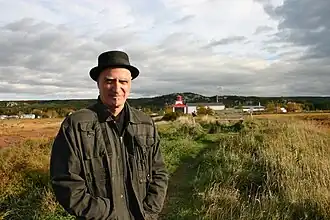 Plus inspiré par la tradition folklorique, Gilles Vigneault développe à compter du tournant des années 1960 un important répertoire qui lui assure une notoriété durable, à commencer par « Jack Monoloy » et « La danse à Saint-Dilon »[94]. Tout en donnant vie à une galerie de personnages pittoresques et légendaires, il saisit à bras-le-corps la thématique patriotique dans des chansons comme « Mon pays » et, plus tard, « Gens du pays », qui devient en quelque sorte l’hymne national non officiel du Québec[95].