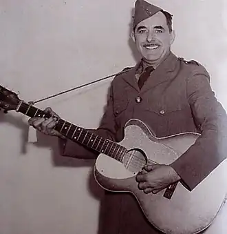 Valorisée par le cinéma, l’image du cowboy de l’Ouest marque l’imaginaire nord-américain, et la chanson country qui y est associée gagne en popularité au Québec à partir des années 1930[65]. Sa nature modeste semblable à celle du folklore et les valeurs traditionnelles qu’elle véhicule plaisent à une part non négligeable du public, plus particulièrement dans les milieux ruraux[27]. Son chant au timbre nasillard et son accompagnement de guitare acoustique font école, non seulement chez les nombreux interprètes country du Québec au fil des décennies, mais également chez les chansonniers des années 1950 et les chanteurs folks des années 1970[66].