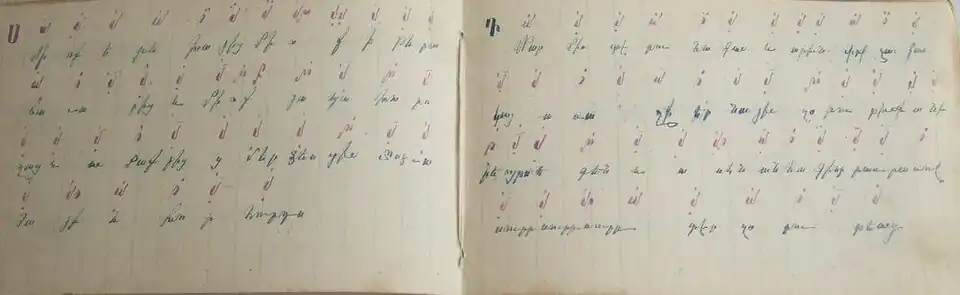 Les plus anciens manuscrits transcrivant des chants arméniens utilisent l'« ancienne notation arménienne », également attribuée à Stépanos de Siounie[2]. À ce titre, ils incluent l'utilisation de neumes connus sous le nom de « neumes arméniens » ou khaz. Le déchiffrage musical de ce type de manuscrit n'est aujourd'hui pas réalisé.