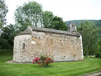 Sur un bloc de réemploi datant de l'époque gallo-romaine est gravé un svastika 卐, ce symbole était utilisé comme décoration dans les mondes grec et romain, mais aussi dans l'art religieux juif, chrétien et musulman.