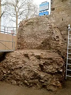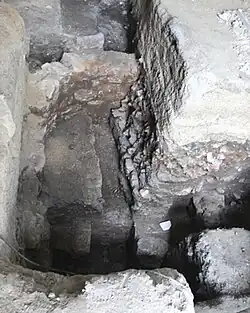 Le dégagement des vestiges du mur gallo-romain, dont les dimensions sont évaluées à 5 m de haut sur 4 m d'épaisseur et 14 m de long permet de préciser le profil du castrum dans cette partie de la ville, mais la poterne attendue - en lien avec l'échange indiqué dans le texte de 919 - n'a pas été retrouvée, le mur ayant été détruit à cet endroit au XIXe siècle[35].