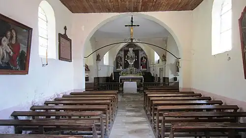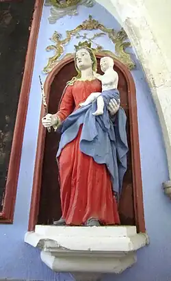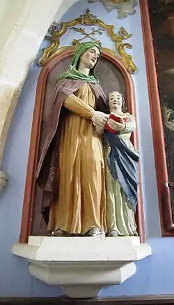 Classé MH (1971) [3], - plusieurs statues du XVIIe : petite Pietà en pierre polychrome, sainte Anne et Vierge à l'Enfant inscrites à l'inventaire du patrimoine culturel.
