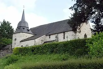 Elle se compose d’une nef unique du XIe siècle, couverte d’une charpente à entraits du XVIe siècle et s’achevant sur un chevet plat[4]. A l’extérieur, elle est flanquée de contreforts peu saillants. Elle a conservé de l’époque romane des petites fenêtres de plein cintre ébrasées vers l’intérieur[3]. D’autres fenêtres plus larges ont été percées à l’époque gothique[1]. Ultérieurement, on lui a adossé au nord-est un clocher (XVIe – XVIIIe siècle) et une chapelle latérale (XVIIIe siècle)[3]. Une pierre sculptée représentant un christ en croix sur un fronton est incrusté dans la face nord de la tour[1].