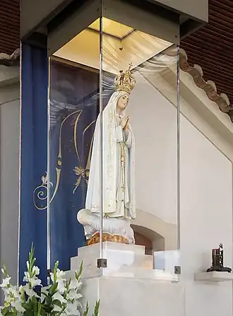 Devant la petite chapelle une statue de la Vierge est installée sur un piédestal situé au lieu exact d'apparition de la Vierge aux trois enfants. Cette statue particulière (la première réalisée sous ce visuel) est l'objet d'une vénération particulière des fidèles. Depuis quelques années, elle est filmée en permanence par une web-cam[13].