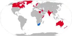 Carte des opérateurs du Centurion en 2017. En rouge, retirés du service, en bleu, en service sous diverses variantes.