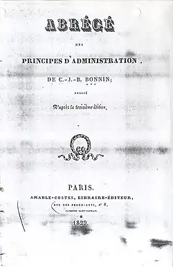- Abrégé des Principes d’Administration. D'après la troisième édition. Paris, Amable-Costes, Libraire-Éditeur. 1829.