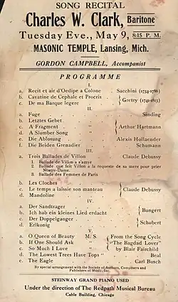 - CHARLES W. CLARK'S RECITAL.; The Chicago Baritone Sings in Mendelssohn Hall – New York Times article, March 14, 1906