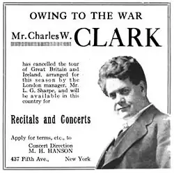 - ↑ "C. W. Clark To Tour England This Fall", The Musical Leader, Volume 27, No. 23, Chicago–New York, 4 June 1914, p. 874.