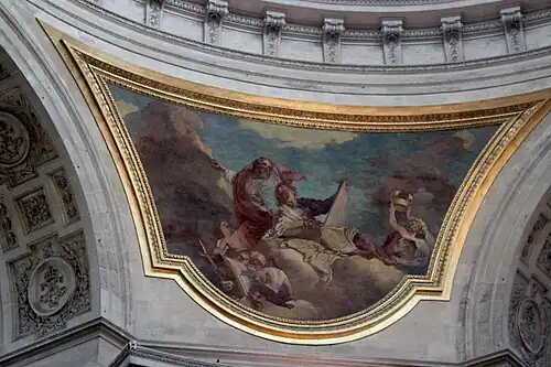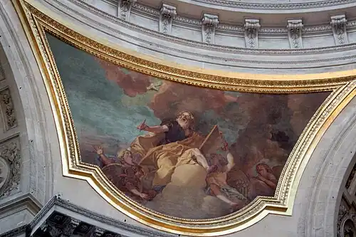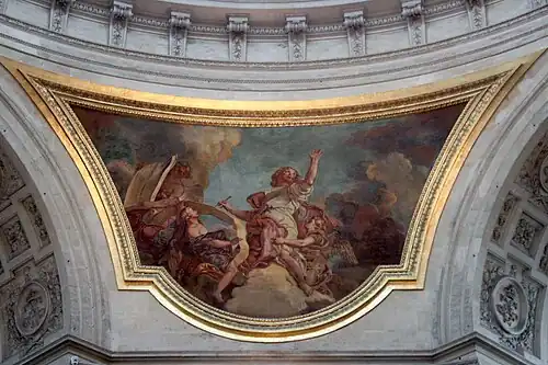 Les fresques de l’intérieur du dôme des Invalides furent son ouvrage capital. Il représente Saint Louis déposant sa couronne et son épée entre les maint de Jésus-Christ, assis au milieu d’une gloire et accompagné de la Vierge, et peint quatre pendentifs représentant les évangélistes avec leurs attributs et entourés d’anges (huile sur toile, Diam. 199 cm)[1]. Noël Cochin a gravé d’après lui ces peintures, en 22 planches. En 1771, Doyen restaura ces peintures fort endommagées par le temps.