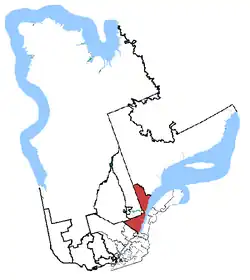 Les circonscriptions limitrophes sont Beauport—Limoilou, Portneuf—Jacques-Cartier, Saint-Maurice—Champlain, Roberval—Lac-Saint-Jean, Chicoutimi—Le Fjord, Manicouagan, Haute-Gaspésie—La Mitis—Matane—Matapédia, Rimouski-Neigette—Témiscouata—Les Basques, Montmagny—L'Islet—Kamouraska—Rivière-du-Loup et Lévis—Bellechasse.