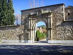 On arrive au portique par un portail de style plateresque. Le beau perron qui nous amène à la porte de l'église, œuvre du maçon Cristóbal de Vílchez, est précédé d'un chemin empierré de style grenadin, en pierres noires et blanches, réalisé en 1679. La façade de l'église comporte dans sa partie haute un blason d'Espagne, peut-être parce que ce monastère dépendait de la chartreuse de Notre Dame du Paular, à Rascafría, fondation royale. Le portail marqué par le néoclassicisme, en marbre gris, fut dessiné par Joaquín Hermoso en 1794. L'image de saint Bruno en marbre blanc est due à Pedro Hermoso, frère du précédent.
