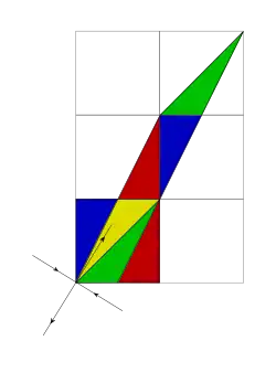 De façon intuitive, en raisonnant sur le carré [0,1]×[0, 1] représentant le tore déplié, cela revient d'abord à déformer le carré en un parallélogramme haut de 3 unités et large de 2. Ensuite, l'opération modulo remet les bouts qui dépassent du carré original dans ce carré (schéma ci-contre). Comme on travaille en réalité sur le tore et non dans le plan, l'opération modulo n'introduit pas de discontinuité.