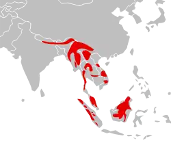 Difficile à observer dans son milieu naturel, il est assez mal connu. Les observations permettant de certifier sa présence sont rares : une seule observation a été faite au Népal[25] en 1981, quelques rapports de présence dans les provinces chinoises du Yunnan et du Guangxi[25]. La première photo dans la nature est prise en 1994 au sanctuaire de faune de Huay Kha Khaeng par des pièges photographiques ce qui atteste sa présence en Thaïlande[9]. De nouvelles photographies ont été prises dans le sanctuaire de Lanjak Entimau en Malaisie, quelques photos prises en 2002 dans le sanctuaire de faune de Phu Khieo en Thaïlande[23] et plus récemment, une photographie dans la réserve naturelle de Dangku au sud de l'île de Sumatra en 2006[26].