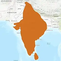 L'aire de répartition indienne du chat rubigineux est encore méconnue. Bien qu'il ait été vu au Jammu et dans l'Orissa situé au nord de la péninsule, il semble qu'il soit essentiellement présent dans le Sud-Ouest de l'Inde, du Gujarat au Kerala[6]. En 2018, l'espèce est observée pour la première fois dans la réserve de tigres Udanti-Sitanadi, ce qui confirme sa présence dans l’État du Chhattisgarh[7]. Dans le Maharashtra, sa présence est confirmée dans les réserves de tigre de Tadoba et de Navegaon-Nagzira, dans la réserve forestière d'Amboli et dans le sanctuaire faunique de Tipeshwar[8]. Lors d'une étude réalisée sur le terrain de 2015 à 2017, la présence du Chat rubigineux a été confirmée dans le parc national de Wilpattu, dans les hauts plateaux du centre de Sri Lanka, près du parc national de Gal Oya, de Dehigahaela et de Dunumadallawa[4].