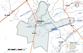 Carte de la commune de Châtenoy (Loiret) et des communes limitrophes.