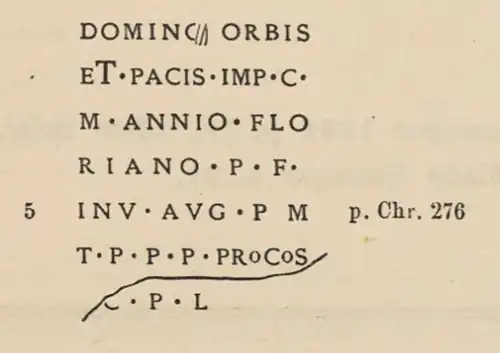 Elle est un des rares milliaires à porter une dédicace de l'an 276 à l’empereur Florien, qui essaya de s'imposer par la force mais dont le règne ne dura que quelques mois. Émile Espérandieu trouve d'ailleurs, à son sujet, « choquant » « l'emphatique qualification de maître de l'univers et de la paix » (Domino orbis et pacis).