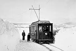 Après un intense travail de conviction, un nouveau projet, à traction électrique et adhésion cette fois, est lancé en 1897. Les travaux commencent finalement le ; la pose des rails débute le et se termine le , sauf pour un tronçon où la route elle-même est en travaux. L'inauguration officielle a lieu le . La ligne mesure 10.5 kilomètres. Son profil est très difficile puisque la pente oscille entre 59 et 68 pour-mille sur près de 5 kilomètres, dans la montée avant le Signal de Bougy, elle atteint même 84‰ dans le village de Gimel (Un système de frein spécial, utilisant des griffes se plantant dans le sol sera même utilisé au départ). En parallèle, les courbes descendent à 35 mètres de rayon en ligne, et 20 mètres sur des embranchements.