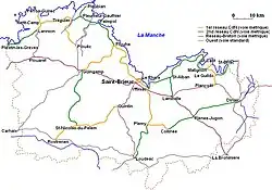 Plan du réseau ferroviaire départemental des Côtes-du-Nord.