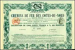 Obligation de la Compagnie des Chemins de Fer des Côtes-du-Nord en date du 1907.