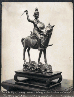Phra Chan montant à cheval, d'après une photographie de 1900 prise au Siam.