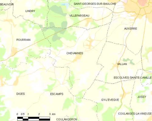 Au , Chevannes est catégorisée commune rurale à habitat dispersé, selon la nouvelle grille communale de densité à sept niveaux définie par l'Insee en 2022[8]. Elle est située hors unité urbaine[9]. Par ailleurs la commune fait partie de l'aire d'attraction d'Auxerre, dont elle est une commune de la couronne[Note 2],[9]. Cette aire, qui regroupe 104 communes, est catégorisée dans les aires de 50 000 à moins de 200 000 habitants[10],[11].