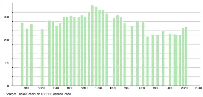 Au dernier recensement de 2022, la commune comptait 255 habitants.