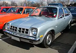 Pontiac a commercialisé une variante rebadgée au Canada sous le nom de « Acadian »[7]. En plus d'être la voiture la plus petite et la plus économe en carburant commercialisée par Chevrolet, la Chevette était la voiture la plus légère commercialisée aux États-Unis. L'EPA a évalué le moteur de base de 1,4 litre à 28 miles par gallon US (8,4 litres au 100 km ; 34 miles par gallon impérial) en ville et 40 miles par gallon US (5,9 litres au 100 km ; 48 miles par gallon impérial) sur autoroute. Chevrolet a affirmé que le cercle de braquage de la Chevette (30,2 pieds) était l'un des plus petits au monde et qu'il s'agissait essentiellement d'une voiture « métrique », « de conception et d'héritage international »[8]. Les Chevette de 1976-1978 se distinguent par des phares ronds et des feux arrière tricolores à monture chromée.