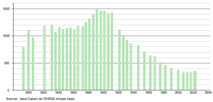 - ↑ Fiches Insee - Populations de référence de la commune pour les années 2006, 2007, 2008, 2009, 2010, 2011, 2012, 2013, 2014, 2015, 2016, 2017, 2018, 2019, 2020, 2021 et 2022.