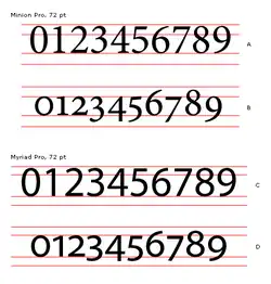 Plus courants dans les polices de caractères anciennes, ces chiffres sont rares dans les polices modernes.