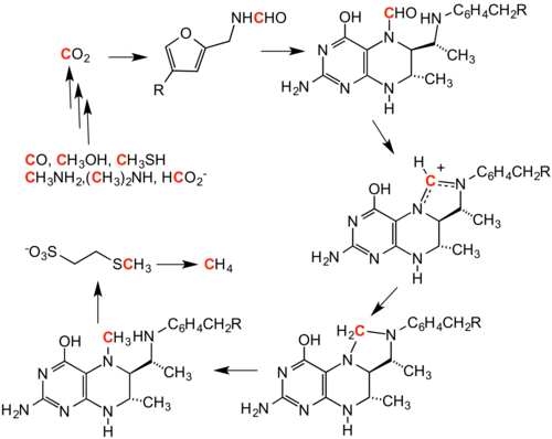 Le méthane, le monoxyde de carbone, le dioxyde de carbone et le méthanol sont aussi des substrats et des produits de procédés enzymatiques. Dans la méthanogenèse, le monoxyde de carbone, le dioxyde de carbone et le méthanol sont convertis en méthane, si des réducteurs adéquats sont apportés[3] La méthanogénèse par les archées méthanogènes est réversible[4].