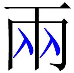 Cependant, la langue chinoise était trop riche pour que ses caractères puissent être produits du seul 會意. Heureusement, le rébus était culturellement développé. Selon cette conception, un caractère était essentiellement composé de deux parties : l'une était la clé donnant une indication quant à la catégorie sémantique, l'autre était une composante phonétique (qui peut généralement être à elle seule un caractère signifiant), utilisée pour sa prononciation. Ce principe de formation de caractère, appelé en chinois : 形聲 ; pinyin : ; litt. « forme-son » – fut extrêmement productive : selon certains observateurs, environ 90 % des caractères chinois ont été ainsi formés. Le tracé exact du caractère dépend du contexte dans lequel celui-ci a été formé, et peut être dès lors difficile à retrouver, mais les caractères ainsi formés peuvent généralement être identifiés sans en connaître les détails. Un exemple est 清, , « clair », qui est composé d'une racine signifiant « eau » et d'une racine (un autre caractère, 青) également prononcé qīng.