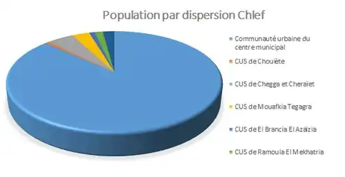 La ville comptait 289 500 habitants et environ 500 000 avec sa banlieue en 2018, soit environ 30% de la population de la wilaya de Chlef[4], ce qui en fait la commune la plus peuplée de la wilaya et la deuxième du nord-ouest, après Oran. En 2018, Chlef est la huitième grande ville du pays de par sa population, en incluant les villes satellites de Chettia, Oum Drou, Ouled Fares, Oued Sly (après: Alger, Oran, Constantine, Annaba, Batna, Blida et Sétif)[5]. Ses habitants sont appelés les Chélifiens.