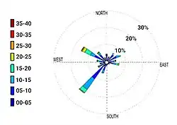 Les températures les plus basses sont donc enregistrées en décembre, janvier et février, avec des températures qui ne dépassent pas les 12°C. En revanche l'été, le mercure enregistre des températures élevées pouvant atteindre les 44°C[19] durant les mois de juillet et d'août.