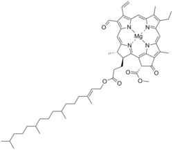 - ↑ (en) Robert D. Willows, Yaqiong Li, Hugo Scheer et Min Chen, « Structure of chlorophyll f », Organic Letters, vol. 15, no 7, , p. 1588-1590 (DOI 10.1021/ol400327j).