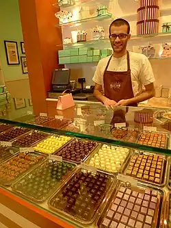 Au tournant du XVIIIe siècle, des Chocolate Houses (« maisons de chocolat », comparables aux Gentlemen's clubs), fleurissent en Angleterre, à l'image de la White's Chocolate House (en), et deviennent des lieux de rendez-vous très prisés par la haute société londonienne pour boire, bavarder, philosopher ou comploter[44]. Le commissaire du gouvernement anglais, John Hannon, introduit le chocolat aux États-Unis, tandis qu'en Italie, les cioccolatieri (« chocolatiers ») se développent dans les grandes villes[55].