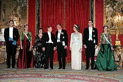En 2006, le duc et la duchesse de Palma de Majorque (à gauche) auprès du roi et de la reine d'Espagne, lors de la visite du président Vladimir Poutine en Espagne.