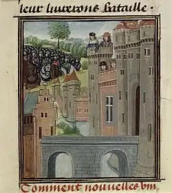 - ↑ Laetitia Le Guay, Les princes de Bourgogne lecteurs de Froissart. Les rapports entre le texte et l'image dans les manuscrits enluminés du livre IV des Chroniques, Turnhout, Brepols, .