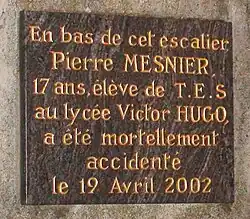 - 2002, le 19 avril, un jeune étudiant du lycée Victor Hugo, Pierre Mesnier, décède accidentellement dans le secteur de la Malcombe. Une plaque lui rend hommage.