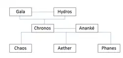 Filiation simplifiée de Chronos selon l'Orphisme.