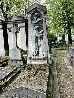- ↑ La sépulture familiale (il est inhumé avec son père, sa mère et son fils Georges) était initialement située dans la 20e division (sous le boulevard périphérique). Elle a été restaurée et déplacée en .