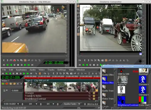 Cinelerra-GG est déterminée à se rapprocher le plus possible de ce que l'on peut attendre d'un logiciel de montage vidéo de niveau professionnel (NLE) pour la plate-forme Linux.