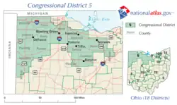 Le 5e district congressionnel de l'Ohio se trouve dans le nord-ouest et le centre-nord de l'Ohio et borde l'Indiana. Le district est actuellement représenté par le Républicain Bob Latta.