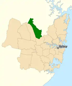 La circonscription de Mitchell (en vert) au nord de Sydney en Nouvelle-Galles du Sud.