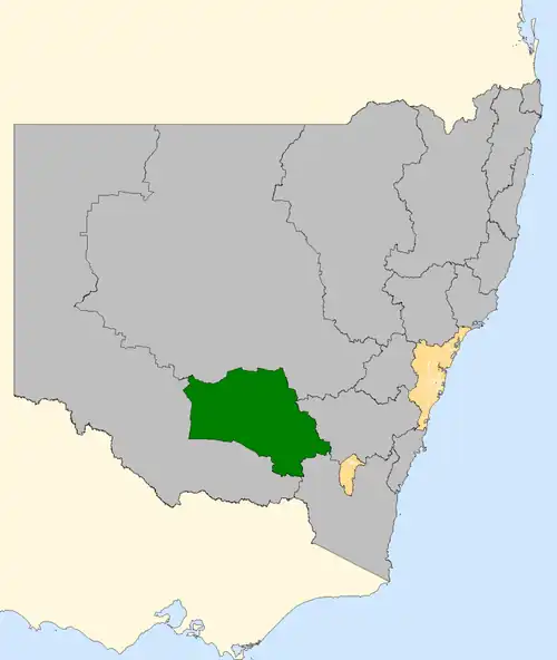 La circonscription est actuellement un siège assuré pour le Parti national, mais elle était un siège beaucoup moins sûr lorsqu'elle comprenait les villes minières travaillistes de Broken Hill et Cobar qui ont maintenant été transférées à la circonscription de Calare.
