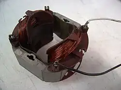 • Enroulement d'excitation (en) - une bobine à noyau de fer qui engendre un champ magnétique constant agissant sur l'enroulement de l'induit.