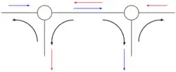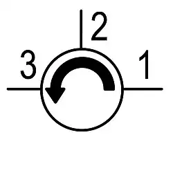 - Du port 1 vers le port 3: Le faisceau incident rencontre le premier cristal biréfringent et se sépare en deux composantes, l'une ordinaire, l'autre extraordinaire, mais parallèles entre elles. Le passage dans le rotateur de Faraday couplé à la lame demi-onde a pour effet de faire tourner la polarisation d'un angle de 90° dans le sens horaire. La composante qui était ordinaire devient extraordinaire et réciproquement. Le passage dans le second cristal biréfringent permet la recombinaison des deux faisceaux en sortie du circulateur[3].