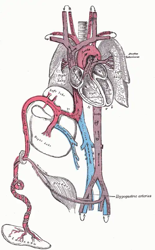 La circulation artério-veineuse du fœtus est transitoirement adaptée à la vie in utéro. Les échanges gazeux et de nutriments s'effectuent via le système placentaire ce qui nécessite un certain nombre de modifications de son système circulatoire dans l'attente de la mise en route d'une ventilation pulmonaire.