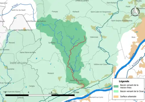 Les bassins hydrographiques sont découpés dans le référentiel national BD Carthage en éléments de plus en plus fins, emboîtés selon quatre niveaux : régions hydrographiques, secteurs, sous-secteurs et zones hydrographiques[4]. Le bassin versant de le Cissereau s'insère dans la zone hydrographique « La Cisse du Bras Aval de Chouzy Vers La Loire (Nc) à la Brenne (Nc) »,[note 1], au sein du bassin DCE plus large « La Loire, les cours d'eau côtiers vendéens et bretons »[1].