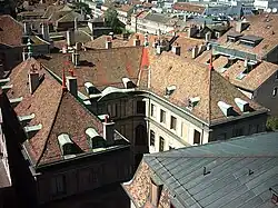 - la ville haute ou Cité : située sur la colline surplombant Genève et dominée par la silhouette de la cathédrale Saint-Pierre