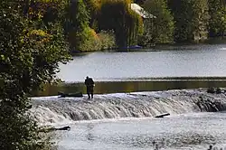 L'Orne, d'une longueur de 170 km, prend sa source dans la commune d'Aunou-sur-Orne et se jette dans l'embouchure de l'Orne à Merville-Franceville-Plage, après avoir traversé 60 communes[18]. Les caractéristiques hydrologiques de l'Orne sont données par la station hydrologique située sur la commune de Thury-Harcourt-le-Hom. Le débit moyen mensuel est de 21,2 m3/s[Note 2]. Le débit moyen journalier maximum est de 370 m3/s, atteint lors de la crue du . Le débit instantané maximal est quant à lui de 423 m3/s, atteint le [19].